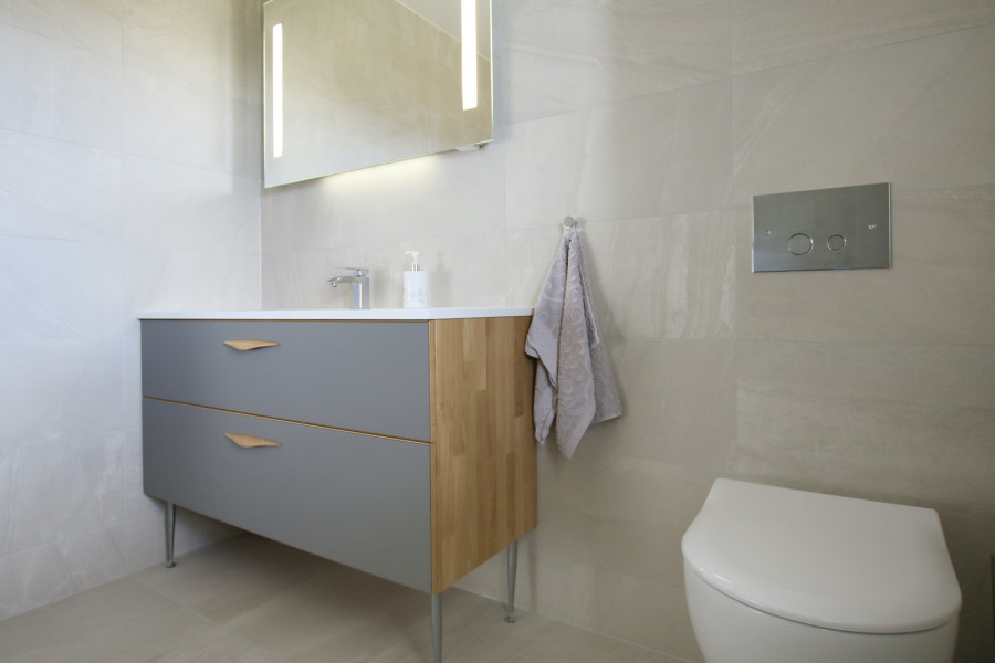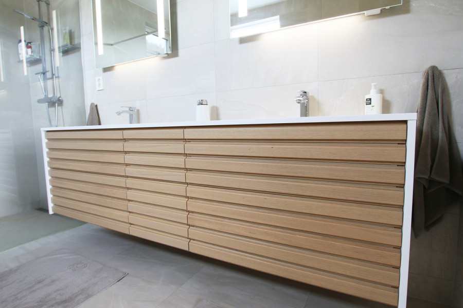 De fleste av våre kjøkkenfronter egner seg også for bad. Kombinert med vår fleksibilitet hvor vi kan tilpasse innredning til den plassen du har, er du sikret et herlig baderom som varer i mange år. Mange av våre fronter får du dessuten i den fargen du selv ønsker!