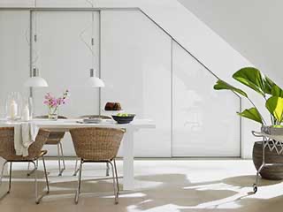 Om du har skråtak eller full høyde så er skyvedører en perfekt ordensskapende løsning for en fleksibel garderobe. Skyvedører har mange fordeler, du fyller ikke rommet og det skjuler tingene dine. Et rom i rommet som skaper orden og oversikt.