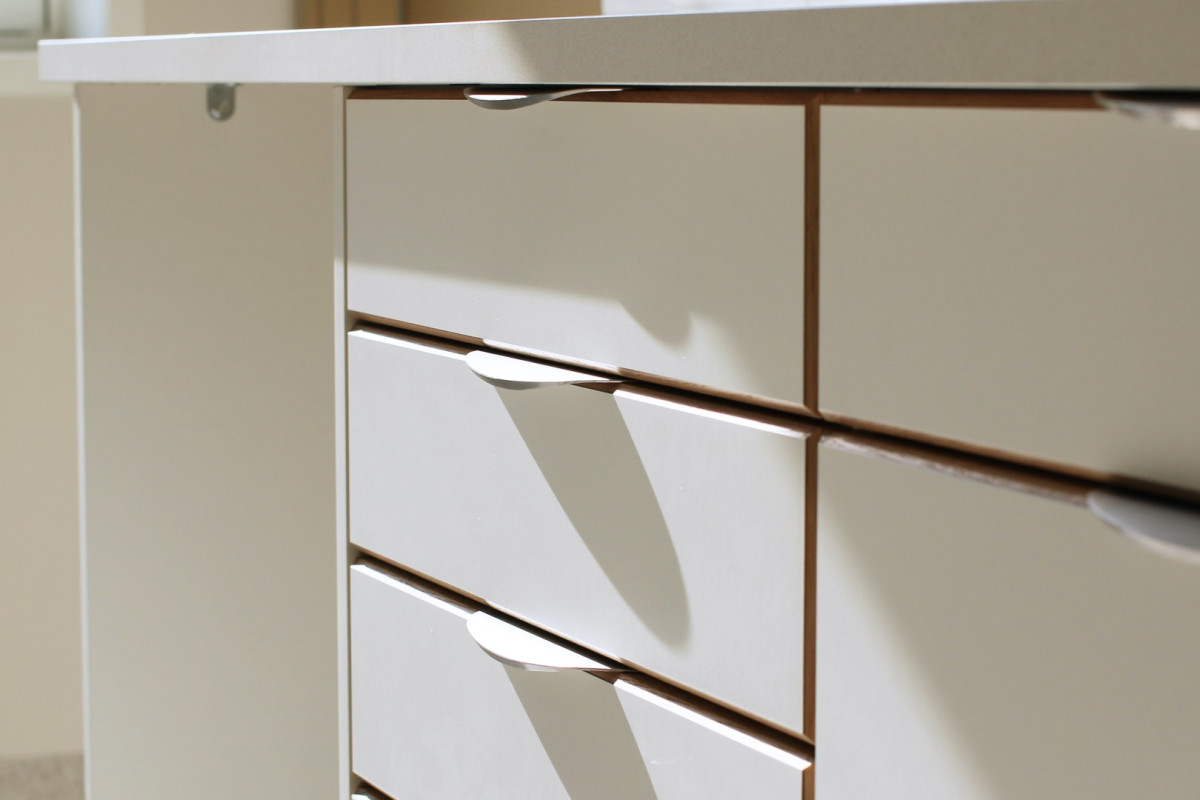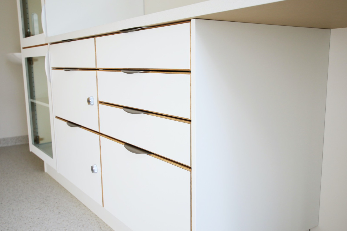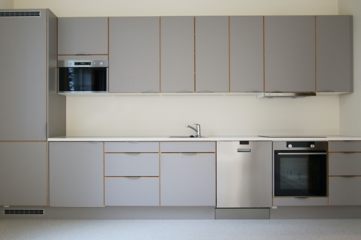 Tidsriktig slett front i høytrykkslaminat med kanter i heltre.