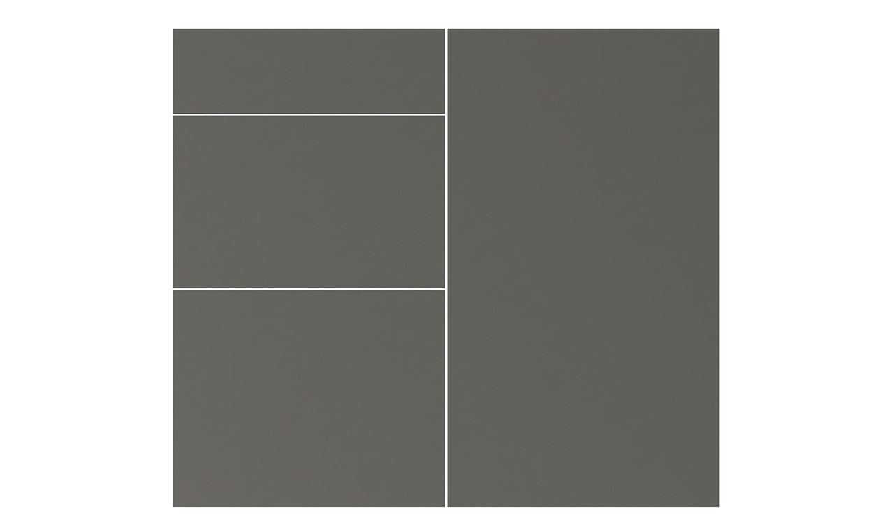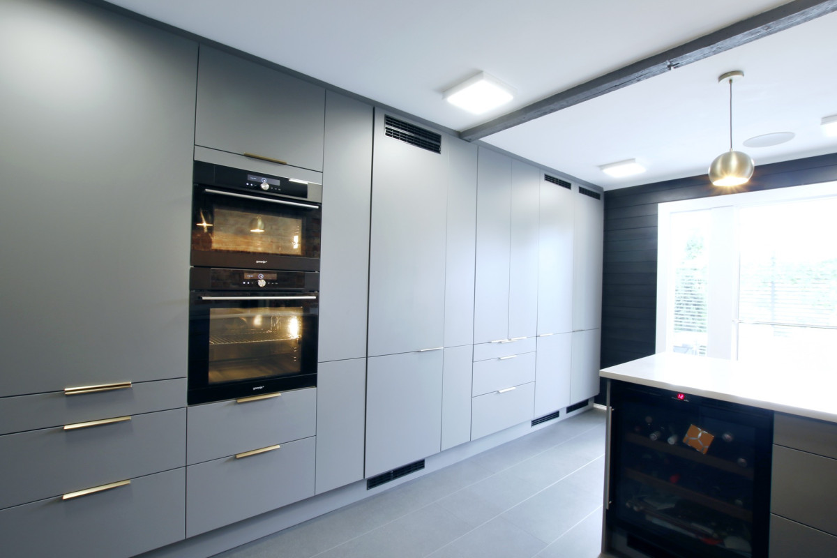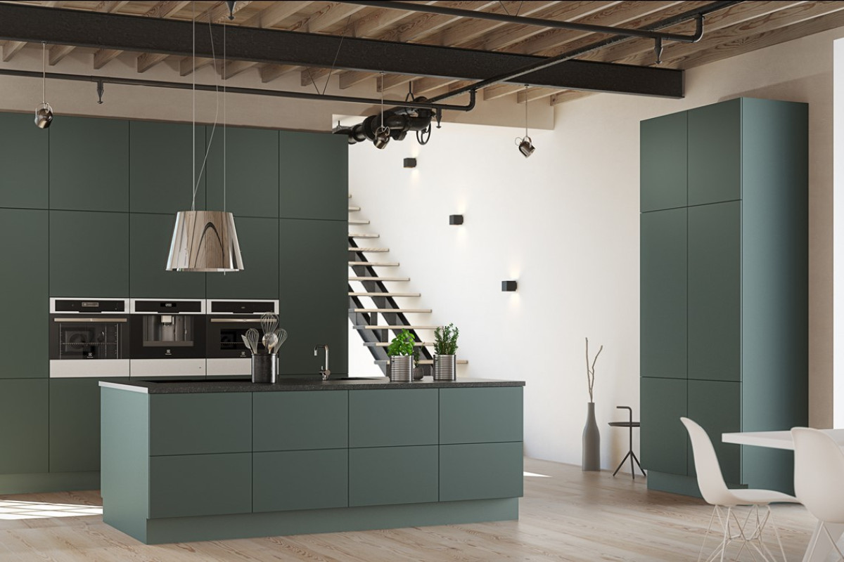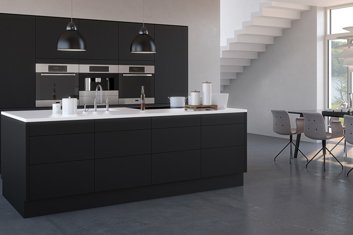 Supermatt og stilfull lakkert front med en silkemyk overflate.