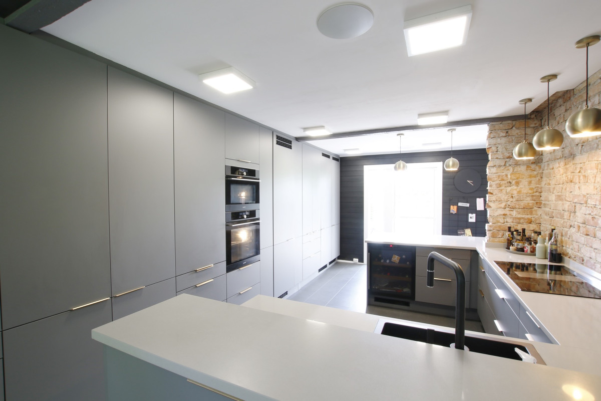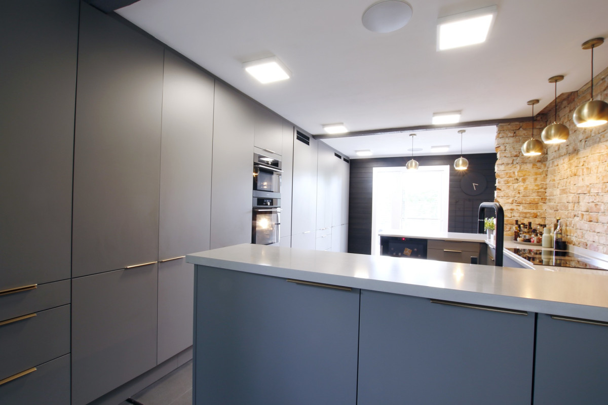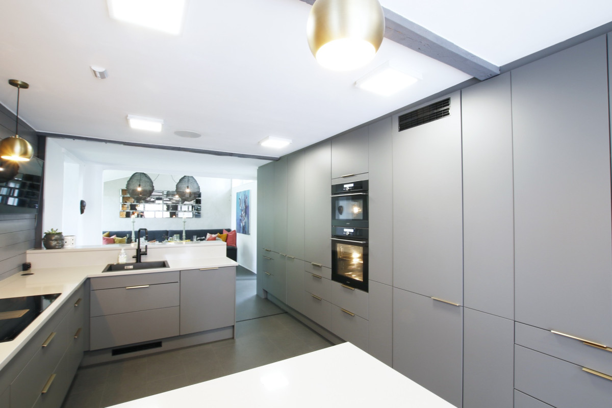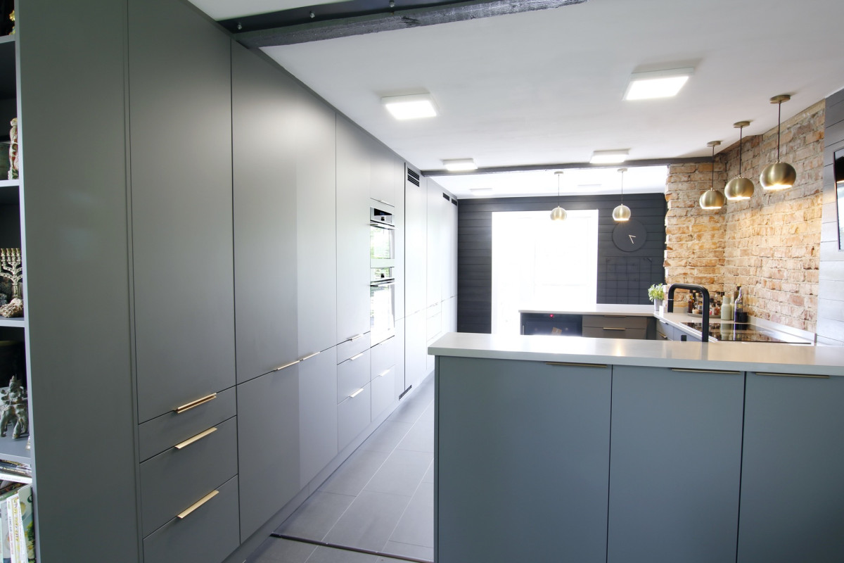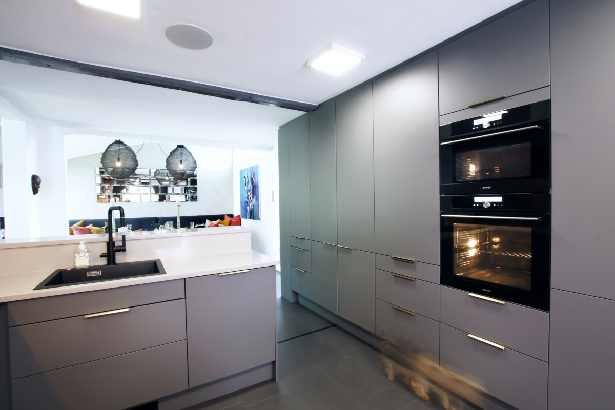 Supermatt og stilfull lakkert front med en silkemyk overflate.